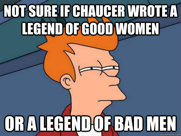 Hi, I am a random person who just literally LAST WEEK made this exact comment in Chaucer seminar (studying the dream visions & TC). Anyway. Thanks for posting the Fry meme—definitely using it in my prezi. :) Cheers!